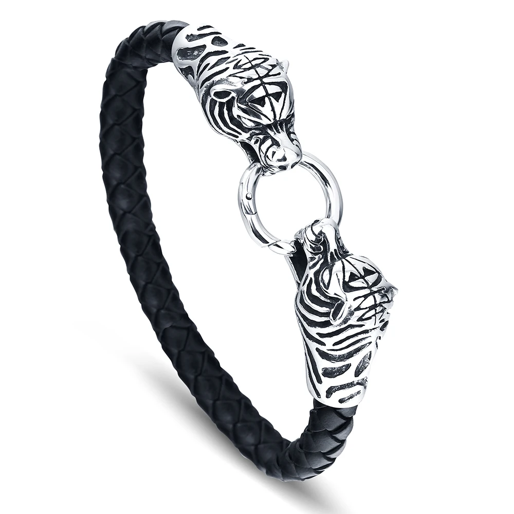 Related Product for Magnet Clasp Leather Bracelet For Men Stainless Steel leopard Charm Bracelet Bangle Braid Genuine L