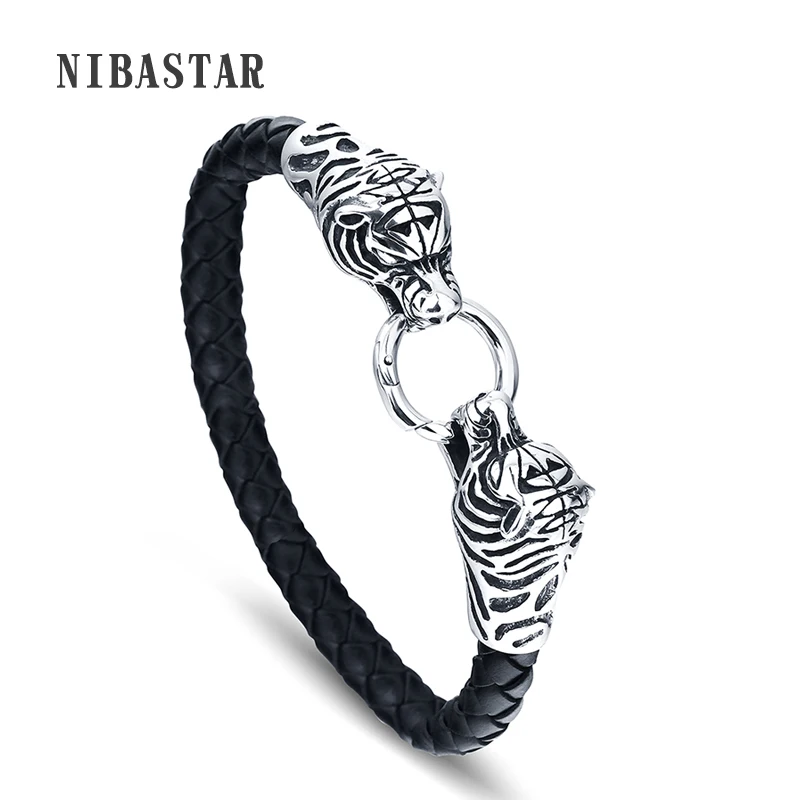 Limited Price of Magnet Clasp Leather Bracelet For Men Stainless Steel leopard Charm Bracelet Bangle Braid Genuine L