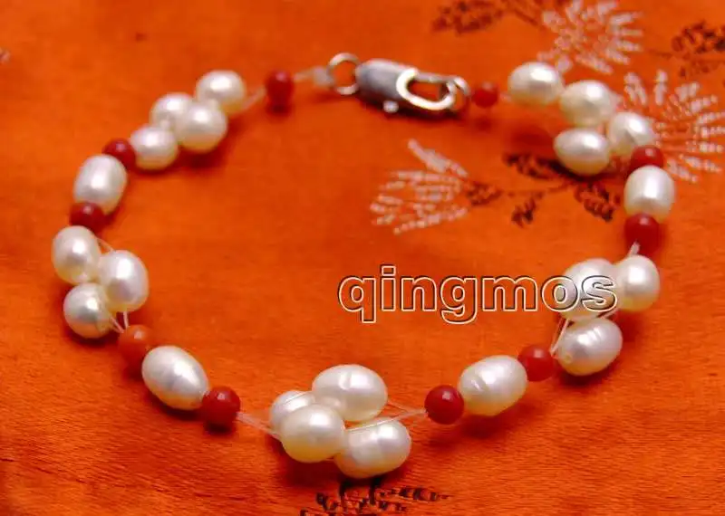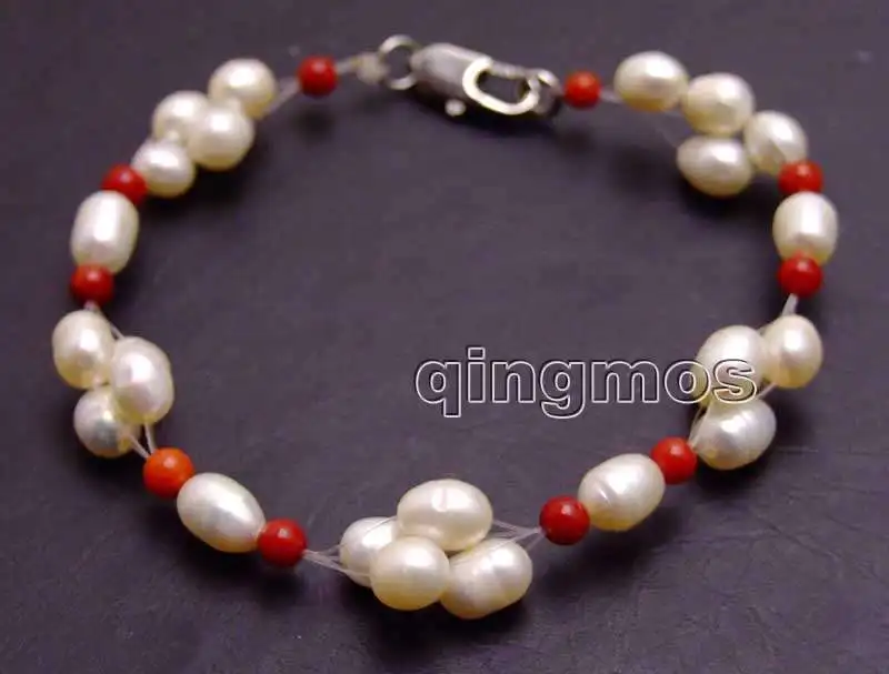 Related Product for 5-6mm White Rice Natural freshwater pearl and 3-4mm Red Coral 7.5'' Bracelet-bra349 Free shipping W
