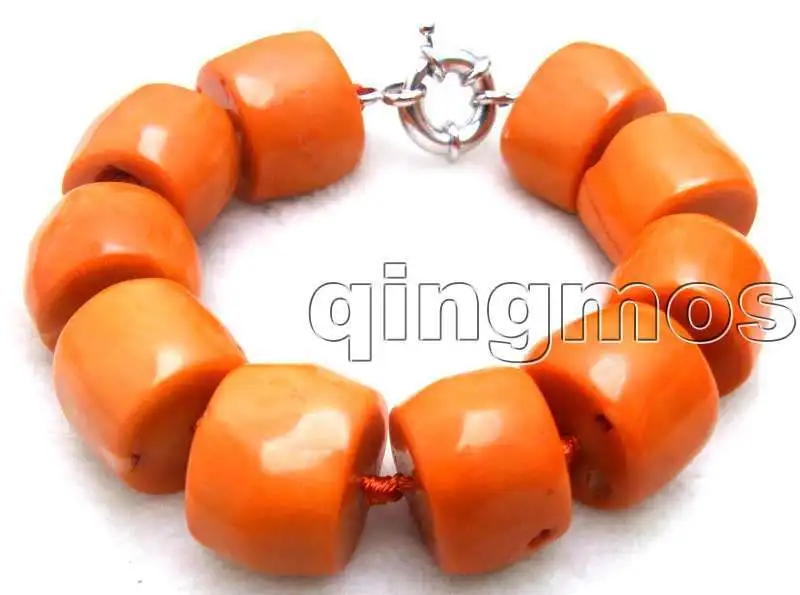 Cheap Price of Qingmos GENUINE 15-20mm Orange NATURAL Coral Thick Slice 8.5-9.5" Bracelet-bra225 wholesale/retail