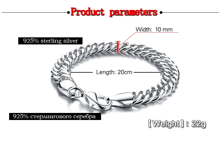 Related Product for Fashion design 925 sterling silver motorcycle bracelet jewelry Pure silver 10mm 20cm men boy bracel