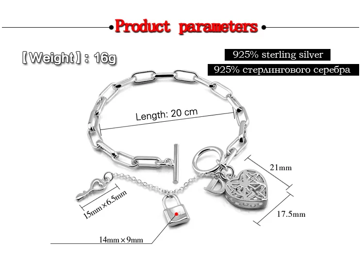 Related Product for Fashionable silver heart-shaped pendant bracelet 925 Sterling silver women coarse hand catenary Lad