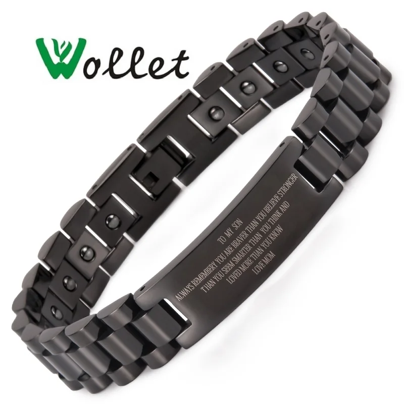 Related Product for Wollet Jewelry Gift for Family Son Mom Dad Daughter Hematite ID Stainless Steel Bracelet Bangle For